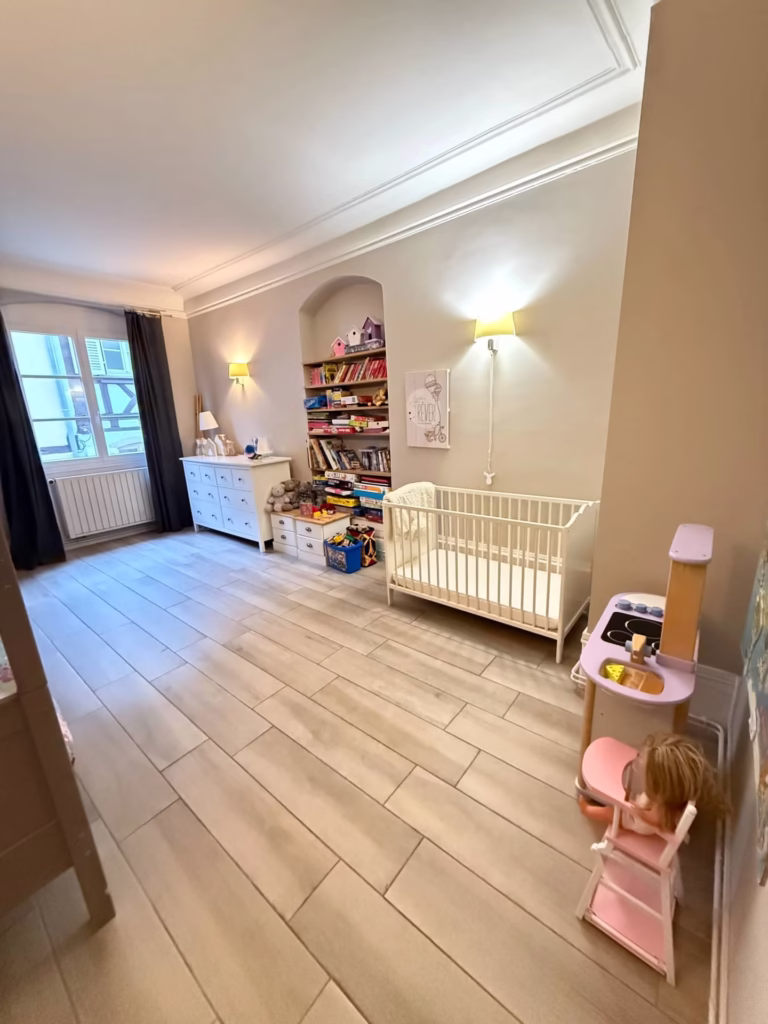 L’appartement, situé en plein centre de Colmar, est très lumineux, avec de grands volumes (130 m2). Il est traversant est-ouest, placé au deuxième étage (sans vis-à-vis) dans une copropriété de charme datant du XVIIè siècle, très calme, donnant sur une cour intérieure.